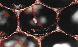 Dried remains adhere tightly to the bottom of brood cells. AFB scales glow under a black light.