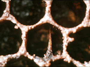 American foulbrood is a serious and reportable bacterial disease that infects honey bee larvae, killing them in the cell and weakening the colony as a result. It spreads easily and persists in equipment for many decades due to highly resistant spores.